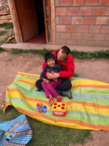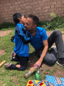 La verdad que al principio, al no conocerle y verle por primera vez, estaba un poco distante, pero en cuestión de minutos cuando le hablé, le tomé en brazos y le saqué los juguetes para jugar con él, se sentó a mi lado ¡y ya tenía ganado su cariño! Después de jugar con él se nos ocurrió montarle a “caballito” y estuvimos trotando con él encima por el patio de su casa. Ver la cara sonriente de Miguel Ángel, disfrutando de esas galopadas, es algo que no se puede describir… Tanto le estaba gustando que al terminar él solo vino a pedir más; ¡quería seguir subido en nuestras espaldas y disfrutando de ese momento!